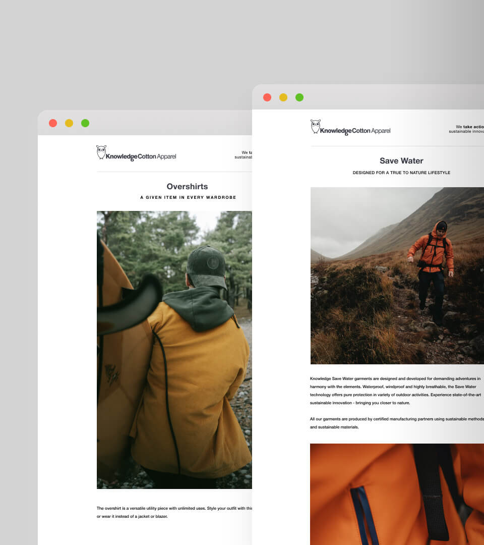 Our communication follows a consistent line where all parts support each other. Based on our core values, we create a visual idea, add a creative concept and present a product that embodies the message. The concept is consistent across all channels, from newsletters, website and social media to advertising, advertorials and in-store exposure. Each campaign is monitored and the outcome is used as input in the planning of future efforts.
