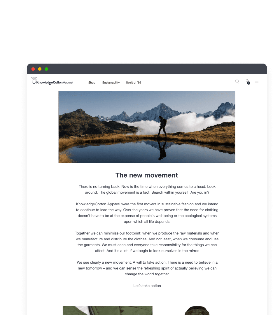 This is where we highlight our products, our sustainable clothing, to inspire people to make the sustainable choice. As a modern, conscious person you can take action and show the world what you stand for by your choice of clothing.